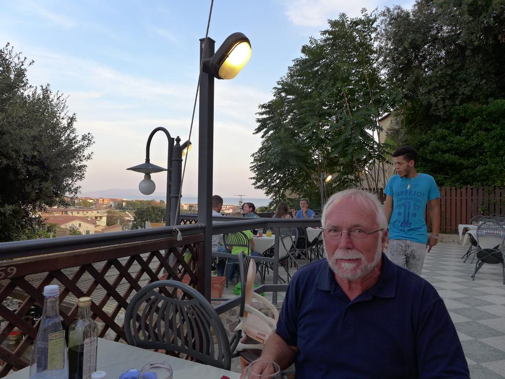 wir essen noch einmal eine gute Pizza unter der Stadtmauer von Castiglione